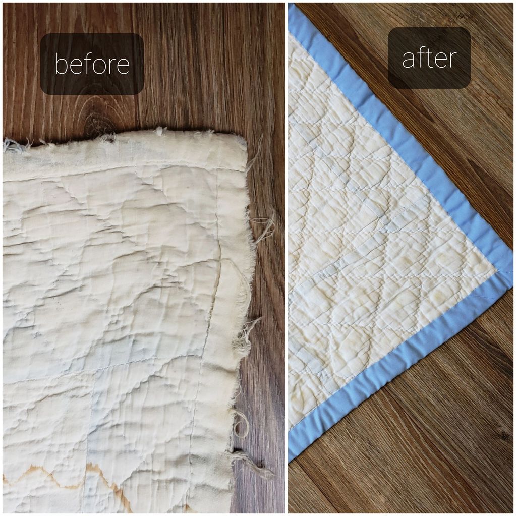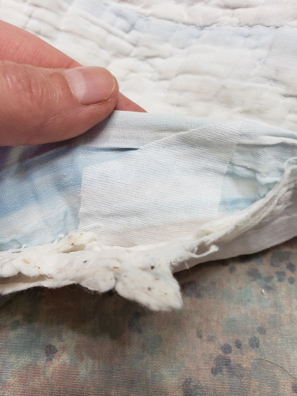 Before putting an new binding on the edge of the quilt, I added some interfacing to stabilize the fabric along the edge of the quilt where the fabric had become very thin.