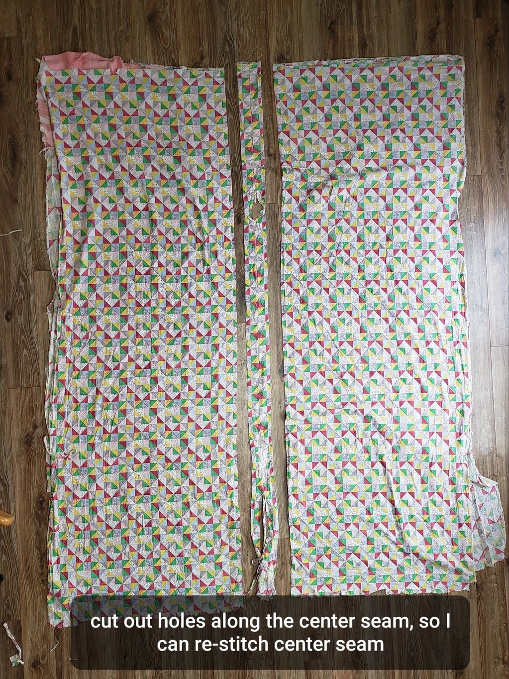 I cut out the holes along center seam so I could re-stitch a new center seam.
