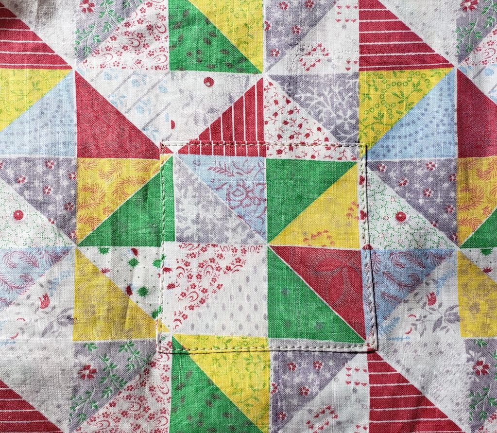 The corners of the border are pieced from some of the fabric from the original vintage fabric that wasn’t being used and from the white patches from the original quilt used to cover the large holes.