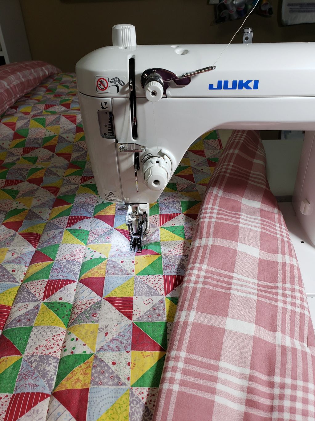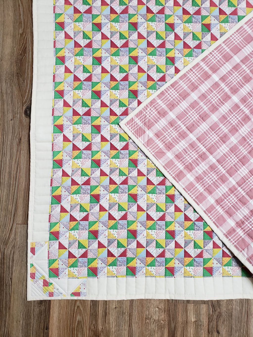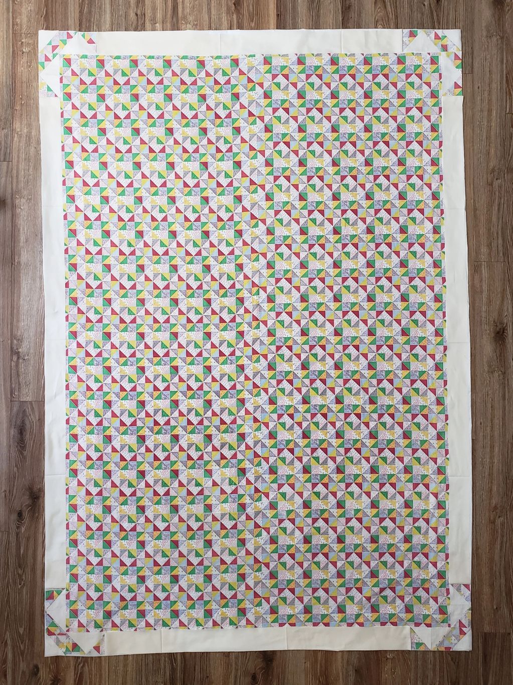 This quilt was originally put together with by sewing the quilt front to the quilt back and “turned” so that the finished edge was on the outside.
