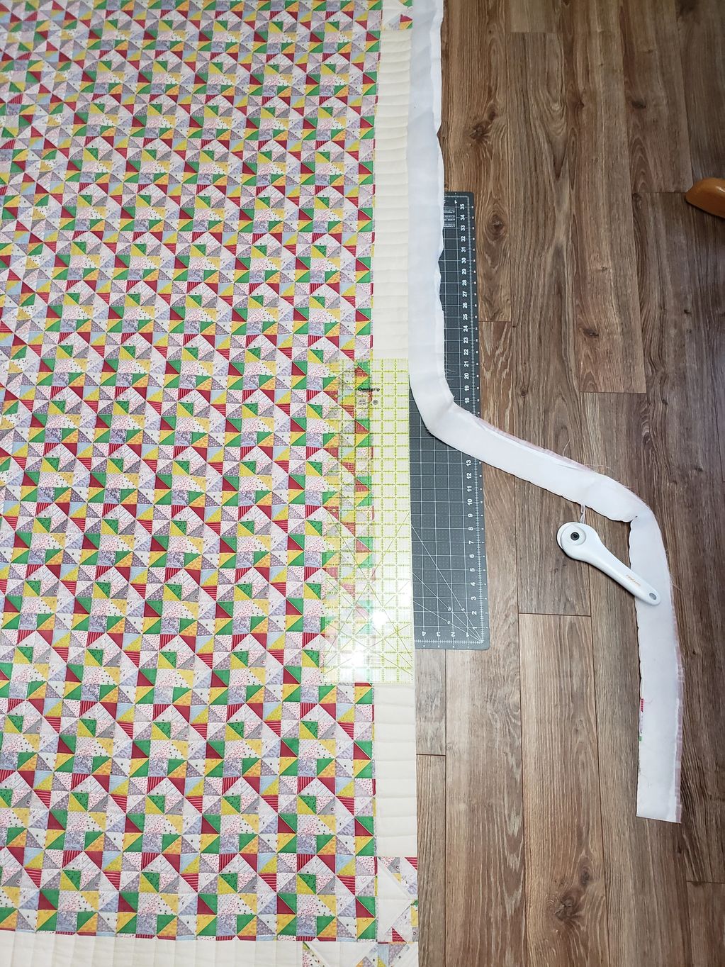 After the quilting was finished, I trimmed off the excess batting and backing and squared up the quilt.